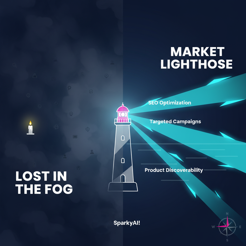 SparkyAI!™ enhances brand visibility by optimizing SEO performance, ensuring product listings are discoverable, and driving targeted marketing campaigns that increase brand awareness and market penetration.