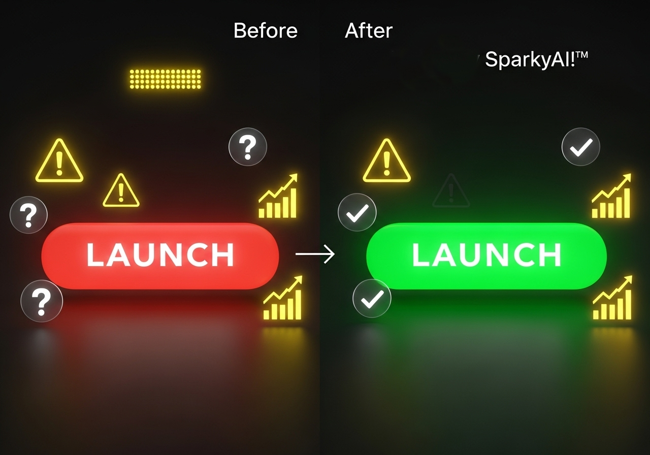 Launching a major campaign used to require a multi-month, six-figure market research process involving recruiting, scheduling, and analysis. With SparkyAI!™, you get deeper insights in under five minutes. This radical acceleration allows you to test dozens of creative concepts in a single afternoon, find the winning message faster, and deploy your budget with unparalleled speed and efficiency.
