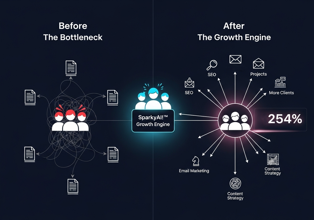 Efficiency is profit. SparkyAI!™ revolutionizes your agency’s workflow, turning what used to be weeks of back-and-forth into days of focused creation. Our AI-driven tools eliminate bottlenecks, slash revision cycles, and ensure perfect alignment with client brand voice from the first draft. This allows your team to spend more time on billable creative work and less on profit-killing admin.